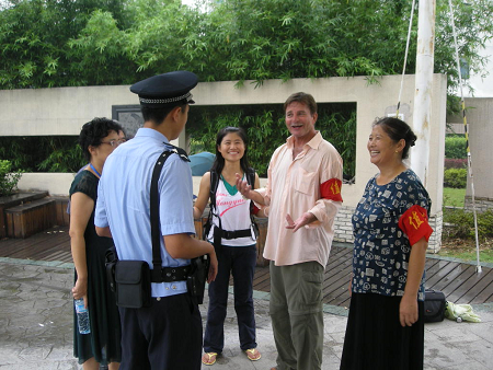 如果某天你在高尔夫花园里看到一个戴着红袖章,金发碧眼的老外,跟在一队小区巡逻队员中执勤巡逻时,你可不要奇怪,他只是活跃在小区里的洋苏州志愿者中的普通一员——Rene。